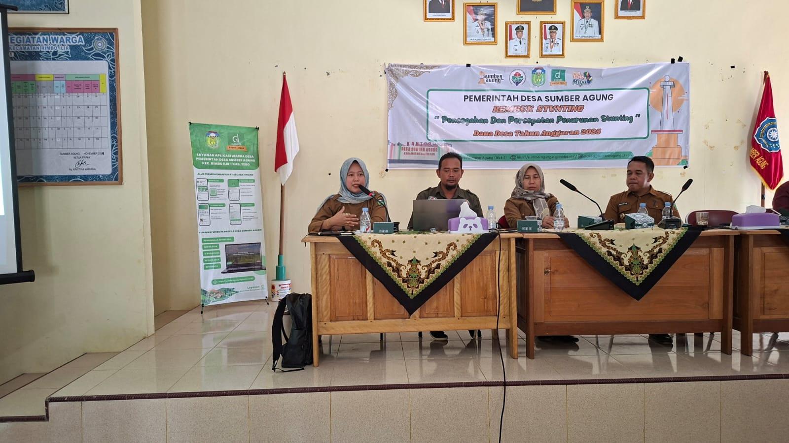 Pemerintah Desa Sumber Agunvg melaksanakan kegiatan Rembuk Stunting dengan tema “Pencegahan dan Percepatan Penurunan Stunting Dana Desa Tahun Anggaran 2025” bertempat di Aula Desa Sumber Agung. Kegiatan ini dihadiri oleh Kepala Desa Sumber Agung beserta perangkat, Camat Rimbo Ilir dalam hal ini di wakilkan oleh Sekretaris Camat Rimbo Iilir Ibu Supriyati, S.Kom, PLKB Kecamatan Rimbo Ilir, Bhabinkamtibmas , Ketua BPD beserta Anggota, Pendamping Lokal Desa ,kader posyandu, bidan desa, TP-PKK Desa Sumber Agung, serta Kader PLKB Desa Sumber Agung.
